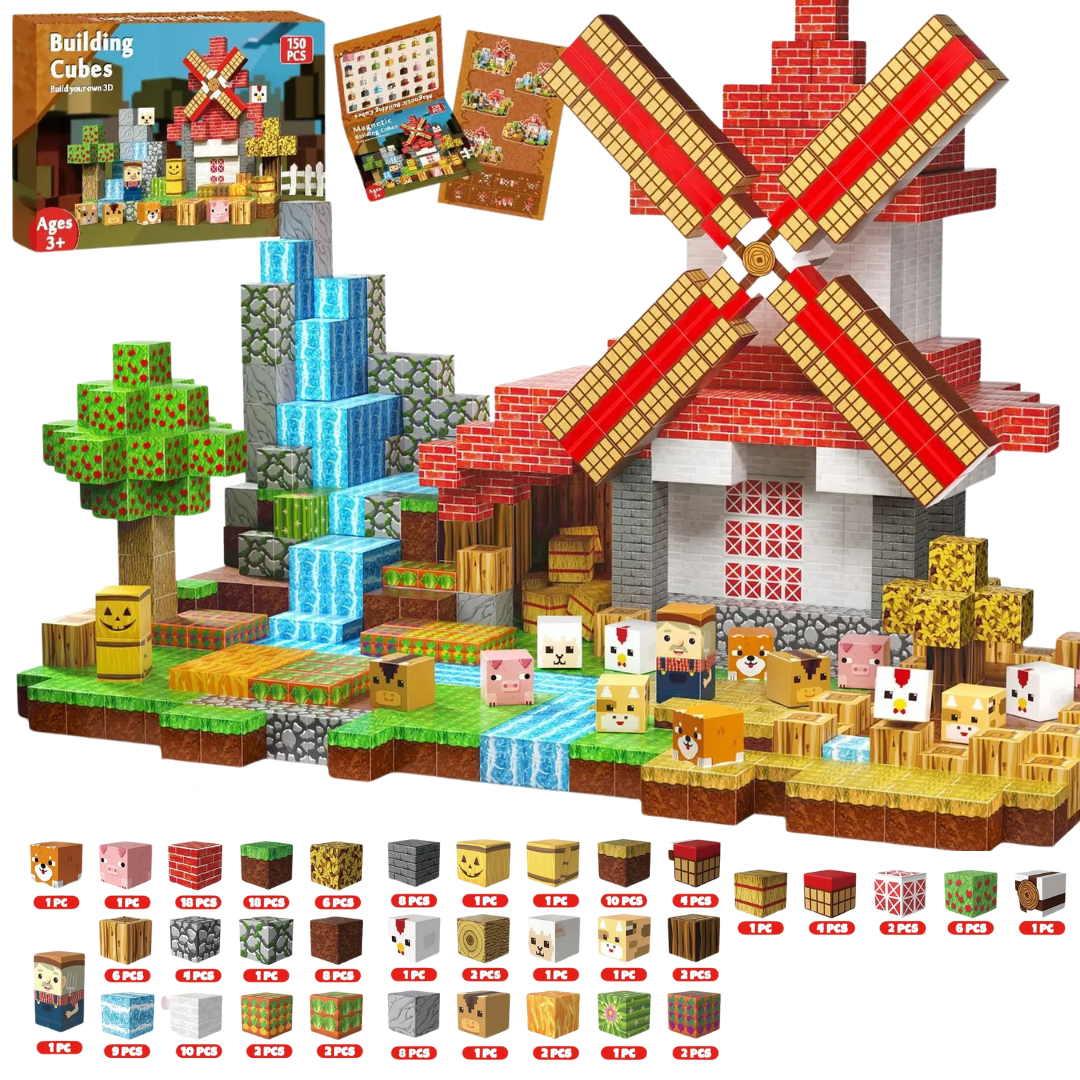 Brinquedo educativo e criativo: ideal para estimular o pensamento lógico, a imaginação e a resolução de problemas.Peças magnéticas de fácil encaixe: perfeitas para montar estruturas 3D, cenários e personagens.