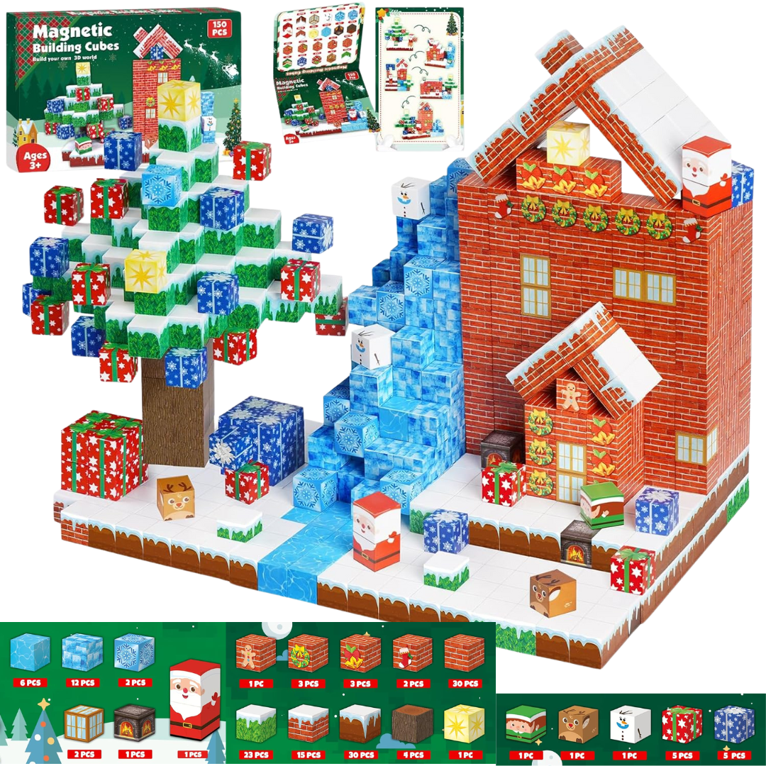 Vila de Natal Encantada - 150 Peças - Blocos Magnéticos Magnecraft
