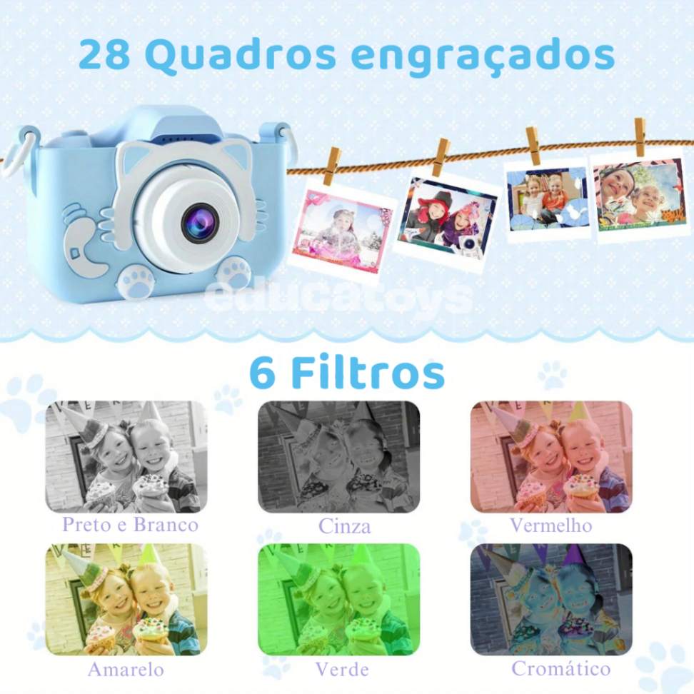 É mais que uma câmera; é uma ferramenta de aprendizado. 🧠 Jogos divertidos, selfies e vídeos ajudam a desenvolver habilidades cognitivas e motoras.