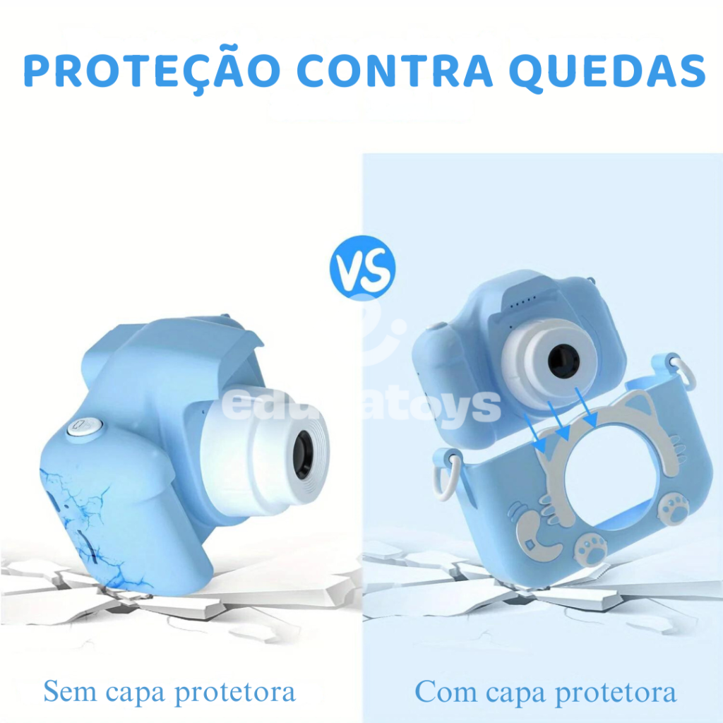 Não se preocupe com os pequenos acidentes. 🛡️ Nossa câmera com capa de silicone é resistente a quedas, garantindo a diversão sem interrupções.