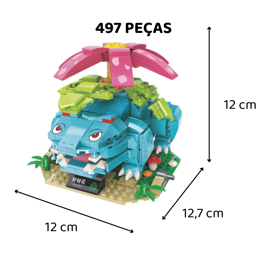 O Conjunto de Blocos de Montar Venusaur – 497 Peças é um dos modelos mais completos e detalhados da coleção. Inspirado no poderoso Pokémon do tipo planta, este kit oferece uma experiência de montagem avançada, ideal para fãs, crianças mais experientes e colecionadores que buscam um desafio maior.